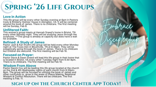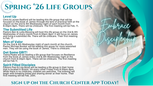 The length of life groups vary per life group. Some last about 12 weeks, some are seasonal, and others go year around. Group leaders can provide more detailed information on the length of particular groups.